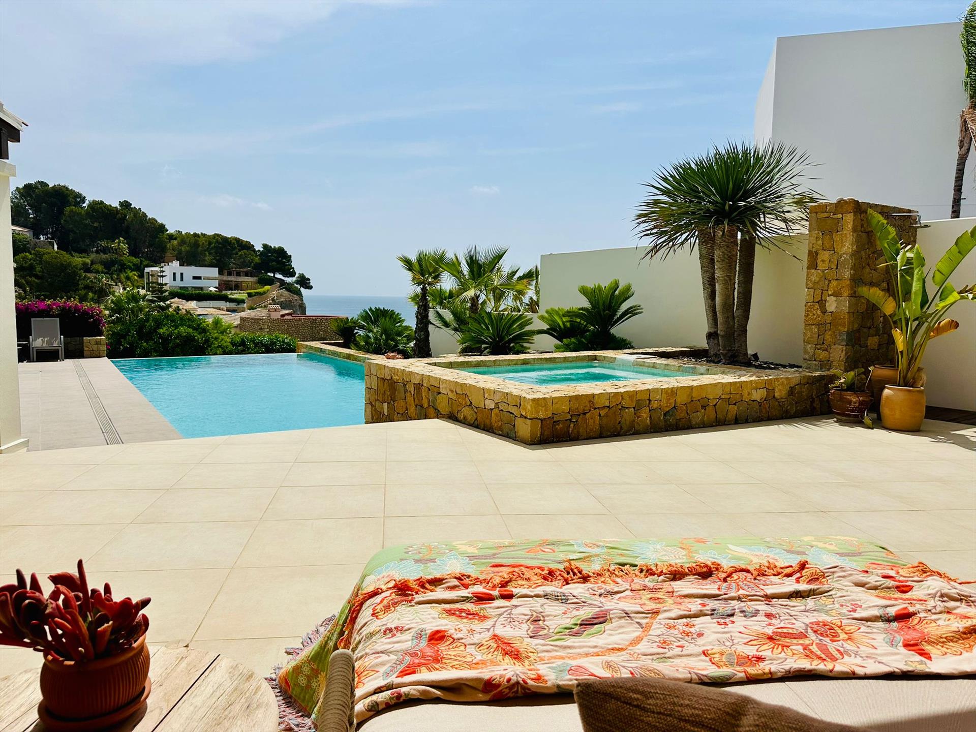 Die Villa hat 4 Schlafzimmer, 4 Badezimmer und 1 Gästetoilette. Die Unterkunft bietet viel Privatsphäre, einen wunderschönen Garten mit Bäumen, einen wunderschönen Pool, einen wunderschönen Blick auf die Meeresbucht und das Meer und einen schönen Blick auf das Tal. Die Bequemlichkeit und die Nähe vom Strand, Sportaktivitäten, Freizeiteinrichtungen und Orten zum Ausgehen machen dies zu einer idealen Luxus-Villa um Ihre Ferien in Spanien zu verbringen mit Familie und Freunden.