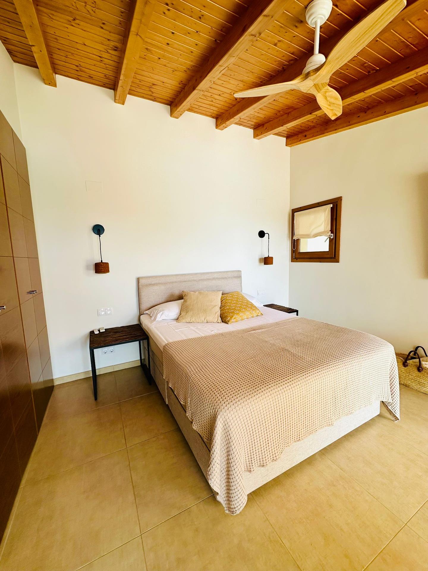- Schlafzimmer mit Kingsize Bett (von 200 x 180cm), Ventilator, Klimaanlage und mit Badezimmer ensuite