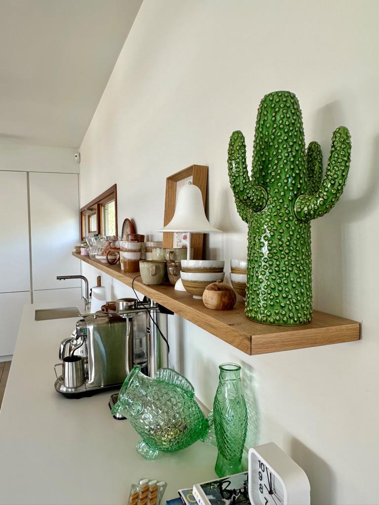 - Wohnküche mit Elektroherd, Elektroofen, Mikrowelle, Geschirrspülmaschine, Kühl-Gefrierkombination, Kaffeemaschine, Wasserkocher, Toaster und Entsafter