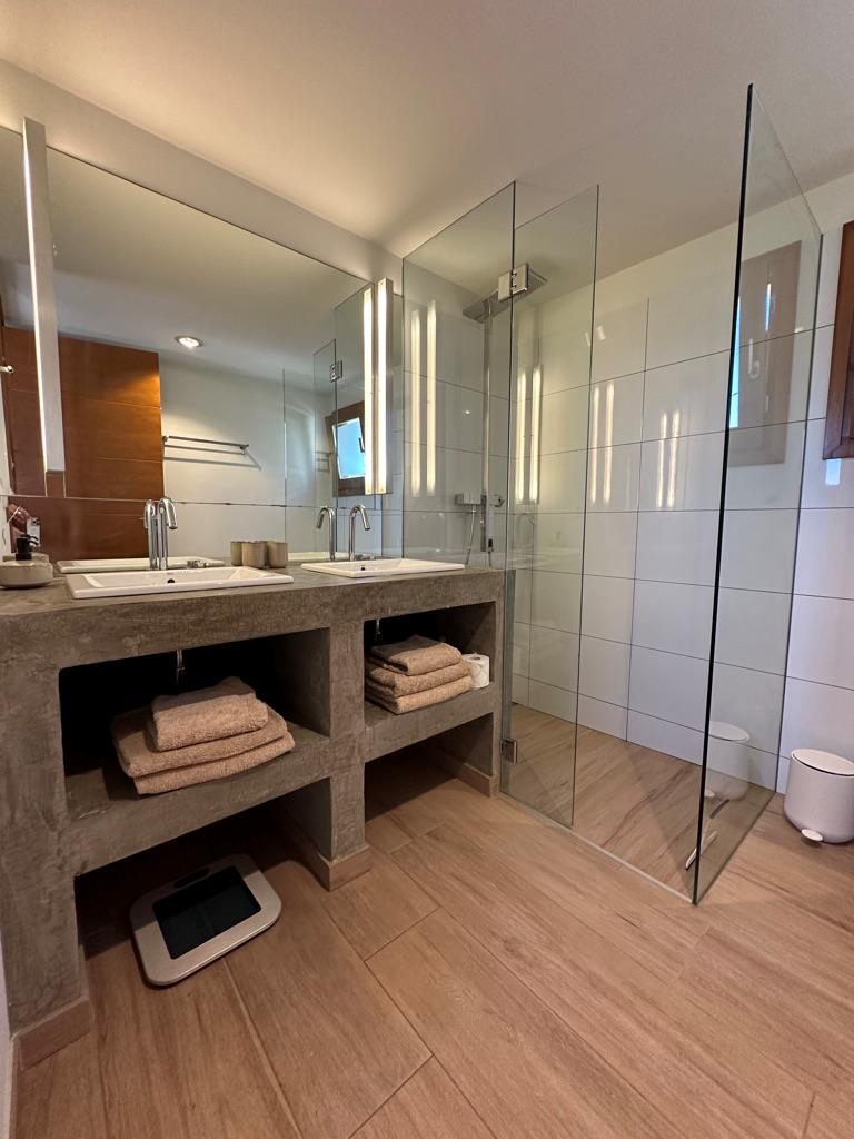 - 3 ensuite Badezimmer, jedes mit Doppelwaschbecken, Dusche, Toilette und Föhn