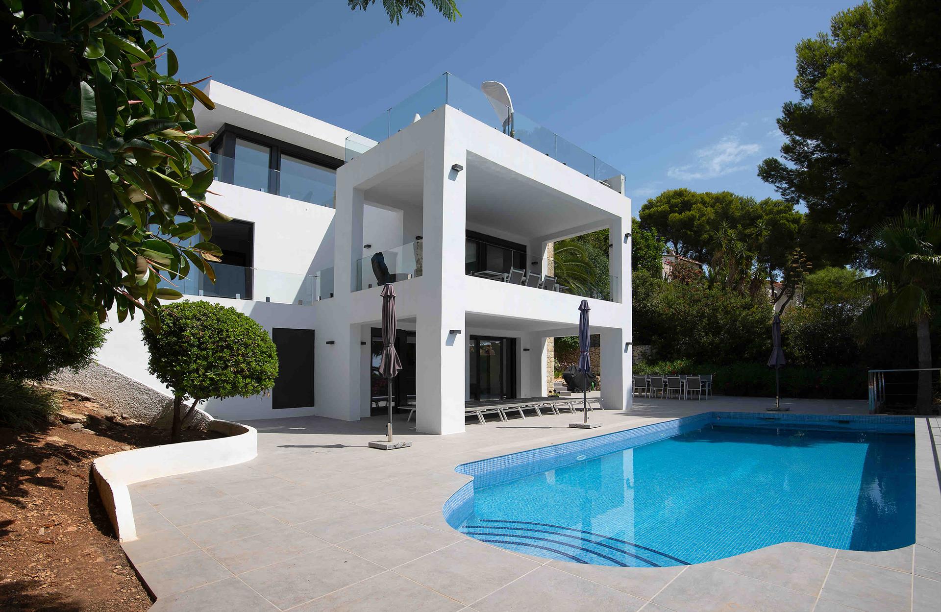 Large and comfortable luxury villa with heated pool in Moraira, Costa Blanca, Spain for 10 persons. The villa is situated in a hilly and residential beach area and at 2 km from Ampolla beach beach.