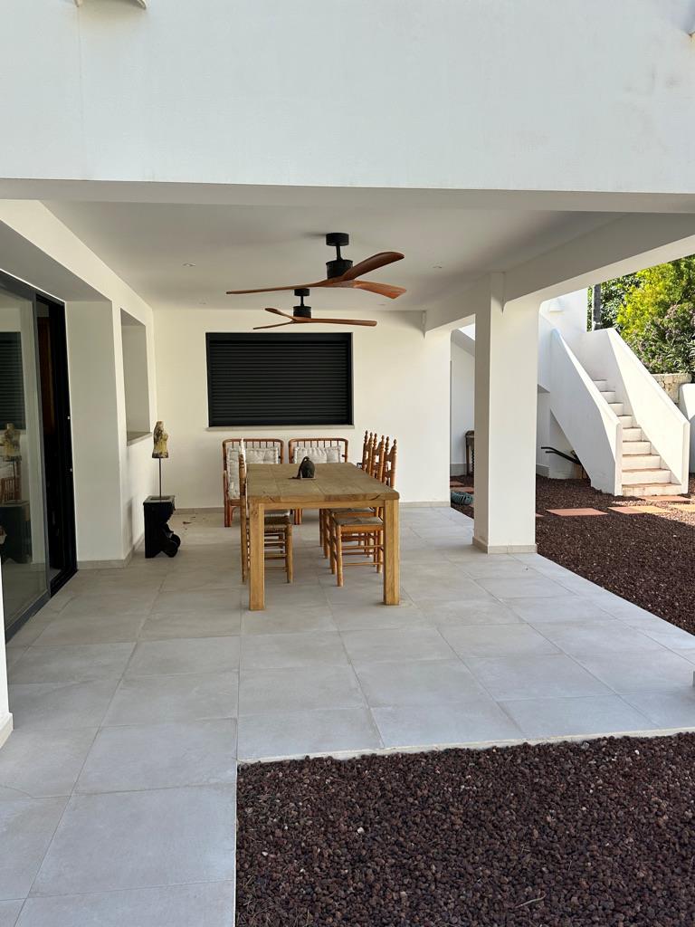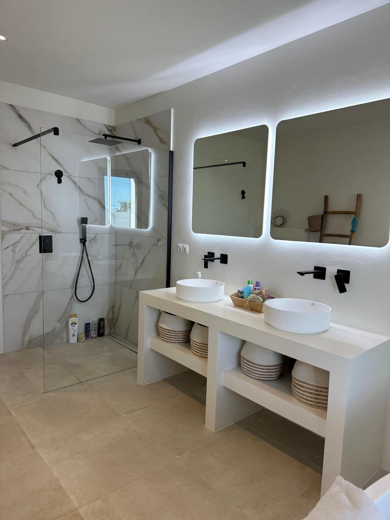 Il y a beaucoup d'espace pour se garer sur la propriété à l'arrivée. Dès que tu entreras, tu ressentiras immédiatement l'harmonie entre le confort moderne et le charme de l'atmosphère. La villa dispose de quatre chambres spacieuses, chacune avec sa propre salle de bain, la climatisation et un ventilateur de plafond. Une chambre se trouve au niveau de la salle de séjour, deux chambres disposent d'une grande terrasse privée sur le toit et la quatrième chambre, au niveau le plus bas, offre un accès direct au jardin idyllique.